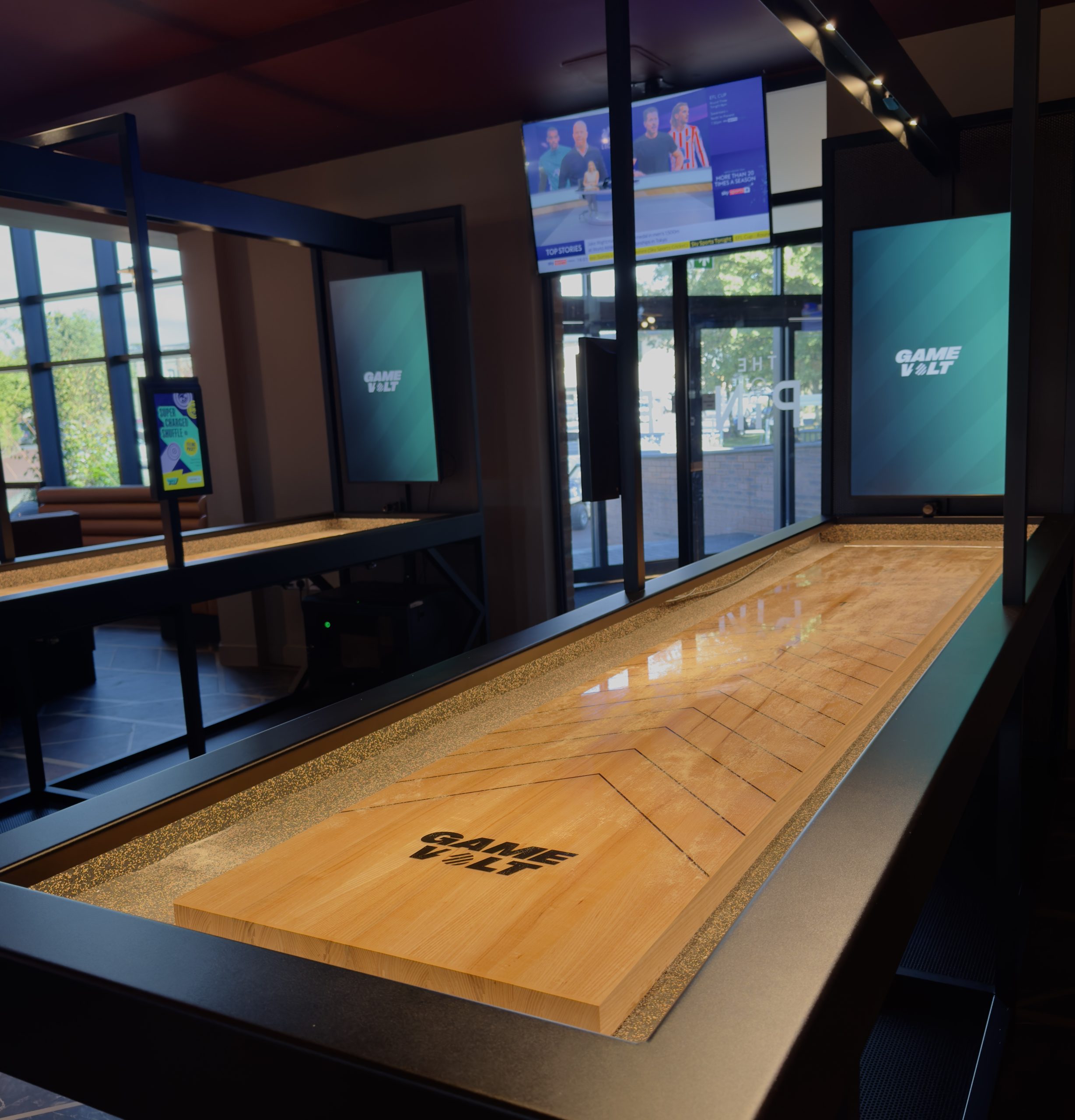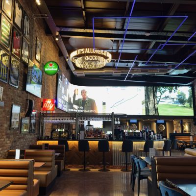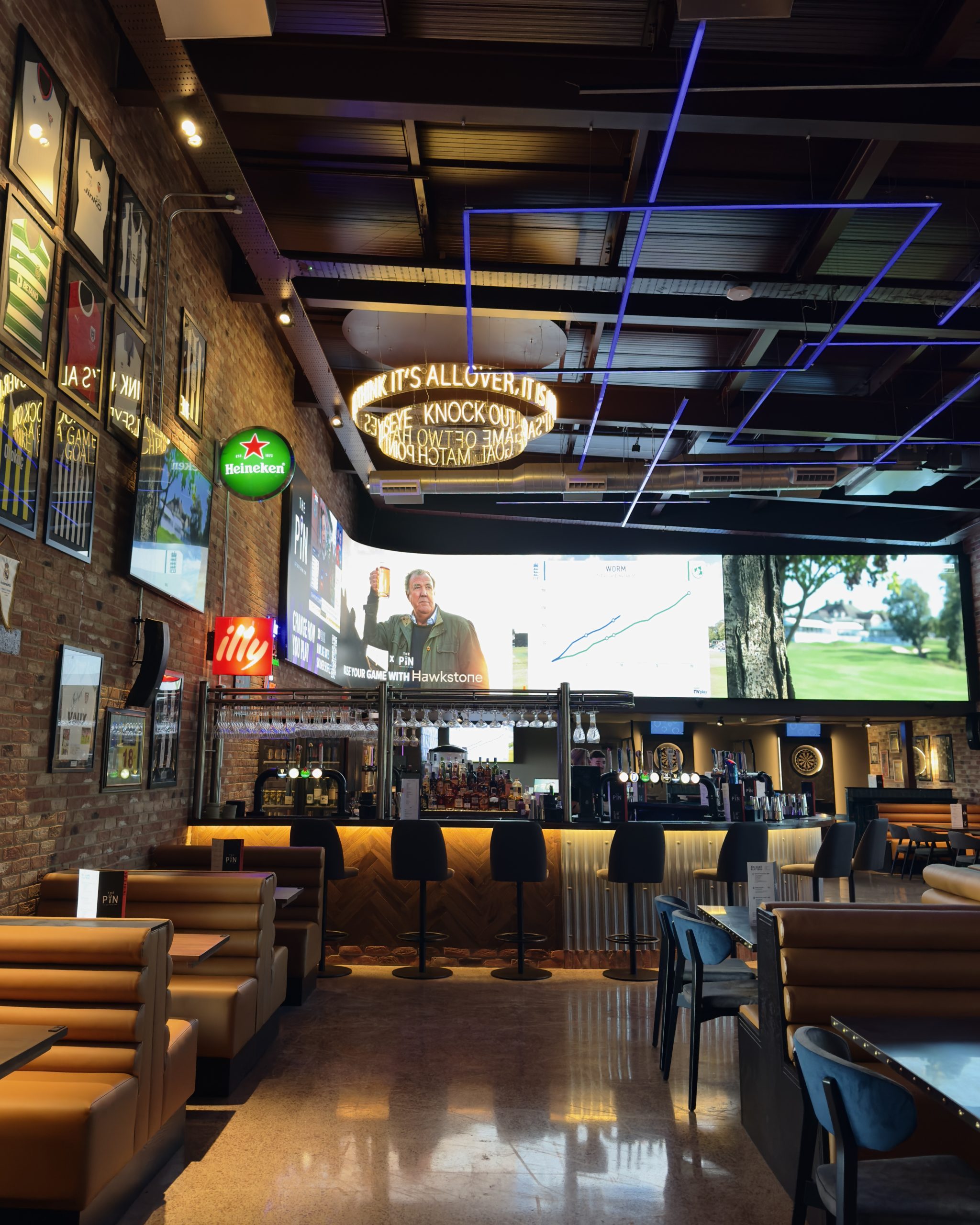 The extension provides a large sports bar and feature curved screen. The Pin – full length bowling alley and games area. New changing room facilites and Golf Clubhouse and shop.